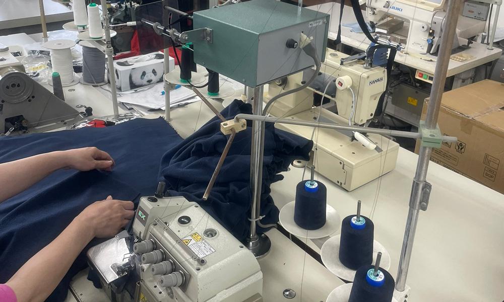 そんなことが出来るのは本社営業所に縫製工場を併設して、モノづくりを知りつくしているからこそです。毎日社内事務所兼作業場でコストダウンの為に営業自ら裁断・縫製・仕上2次加工を手掛けて確認しお客様にお届けします。